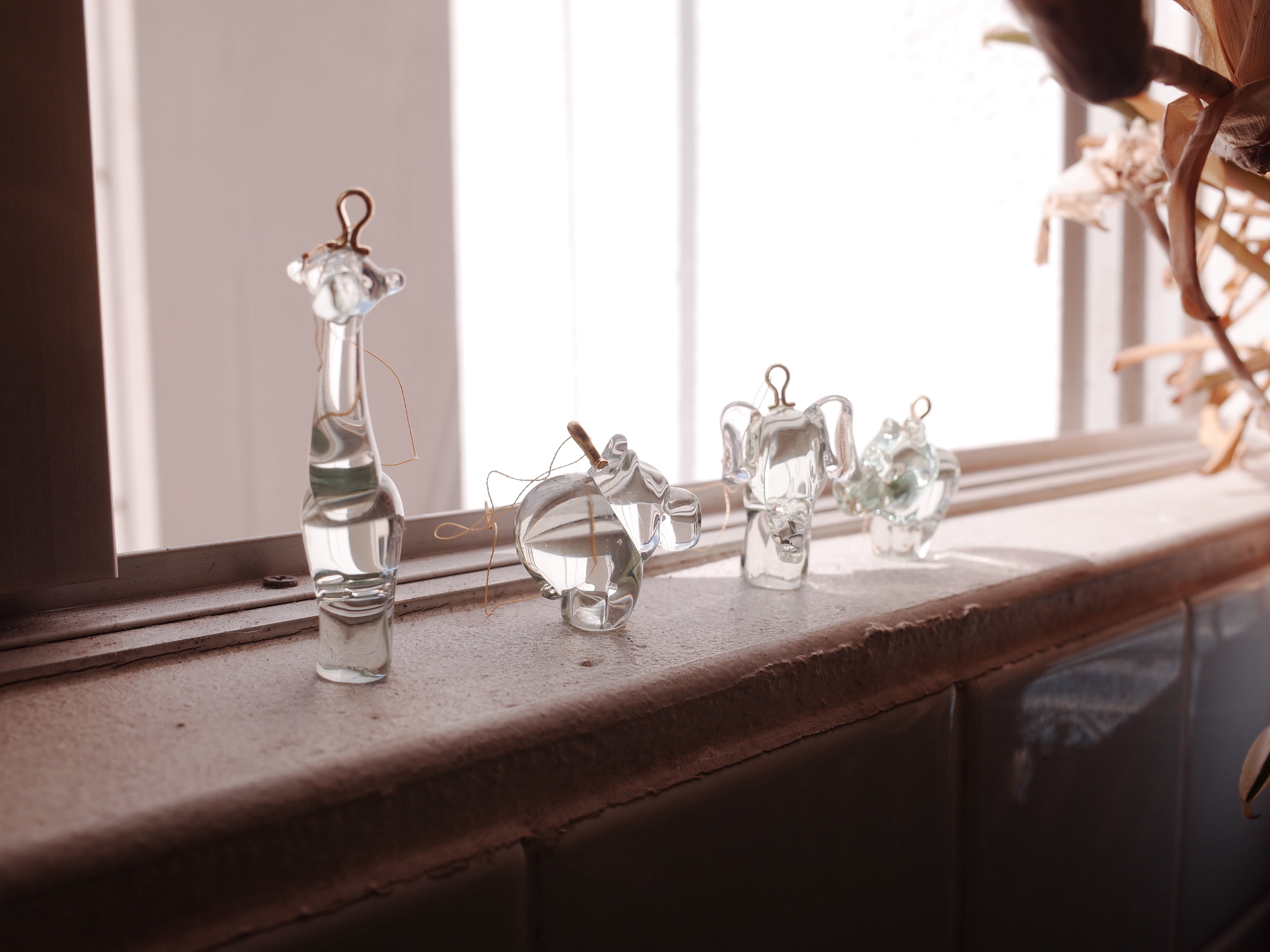 太陽光があたるとキラキラとする上質なグラスの小さなオブジェ