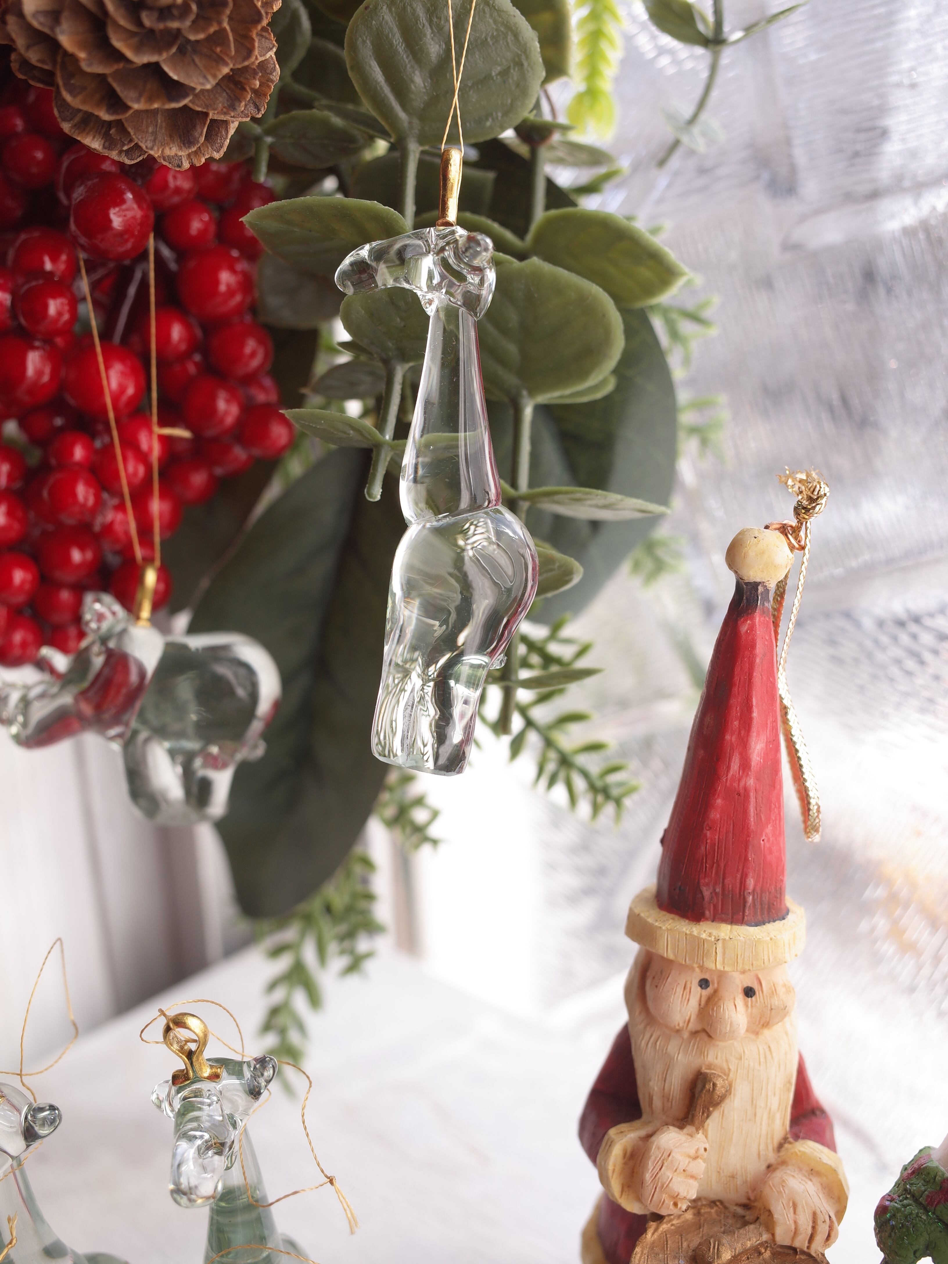 窓辺に棚の上にまた紐付きですのでクリスマスのオーナメントとしても活躍しそうです。