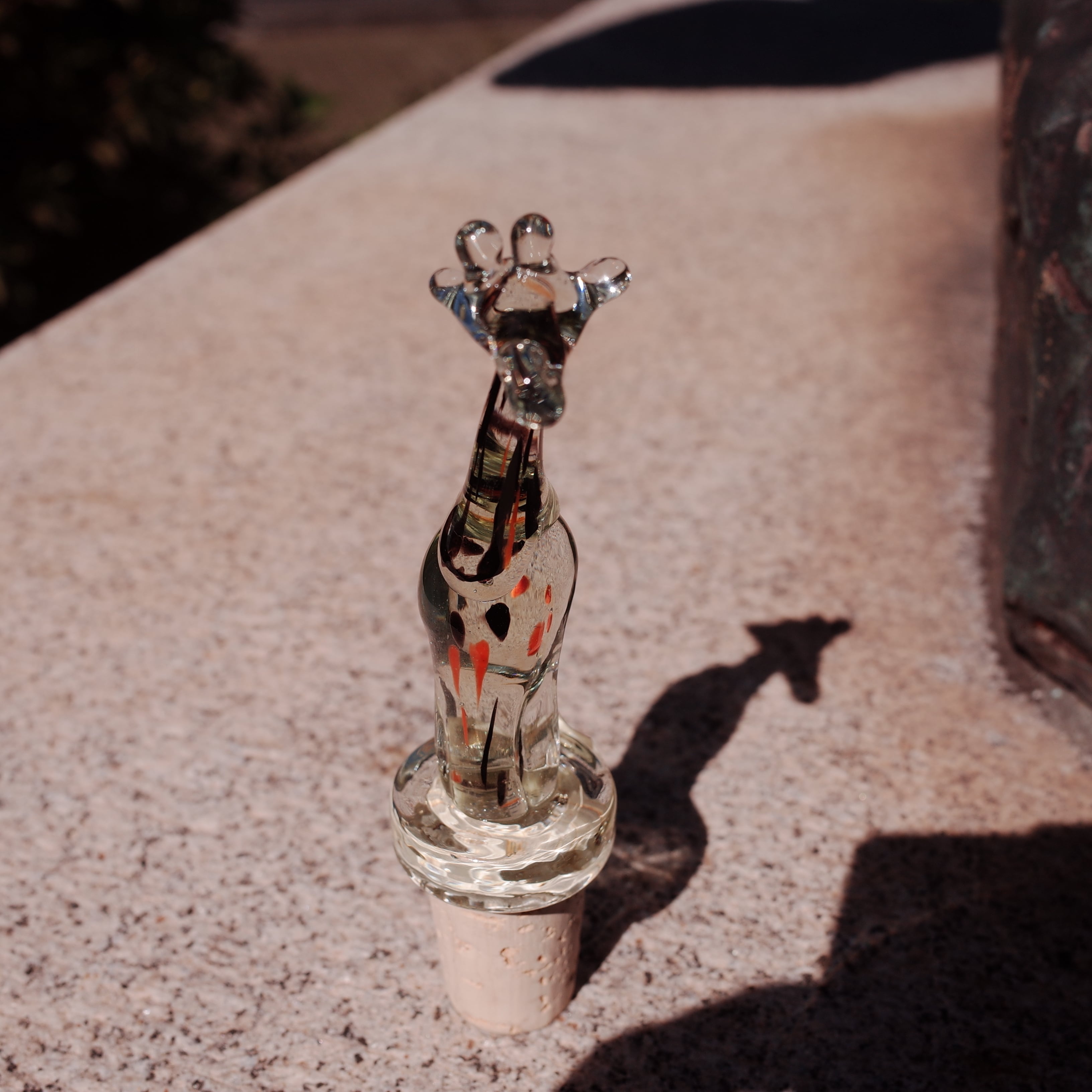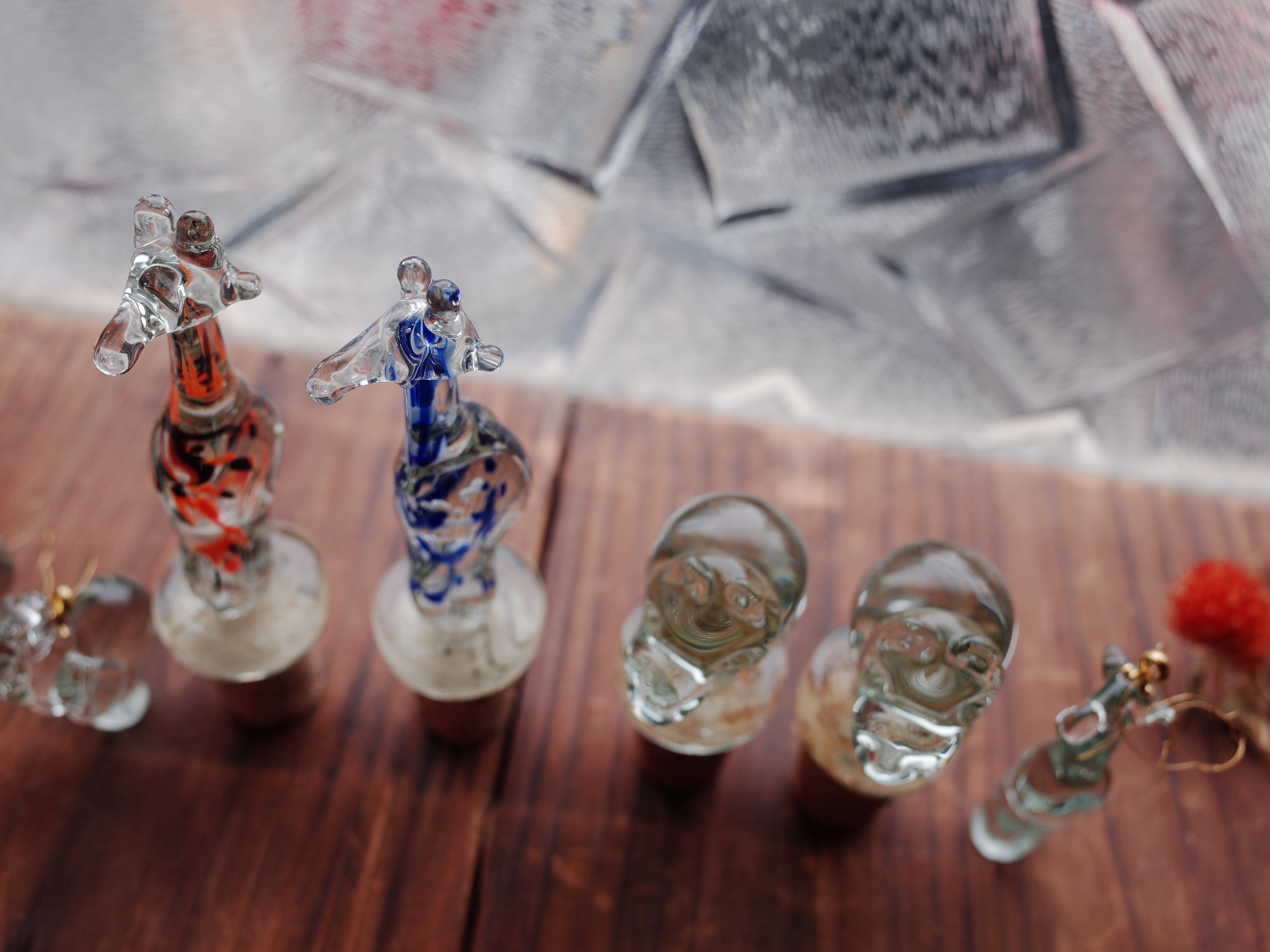 太陽光があたるとキラキラとする上質なグラスの小さなオブジェ付ボトルストッパー