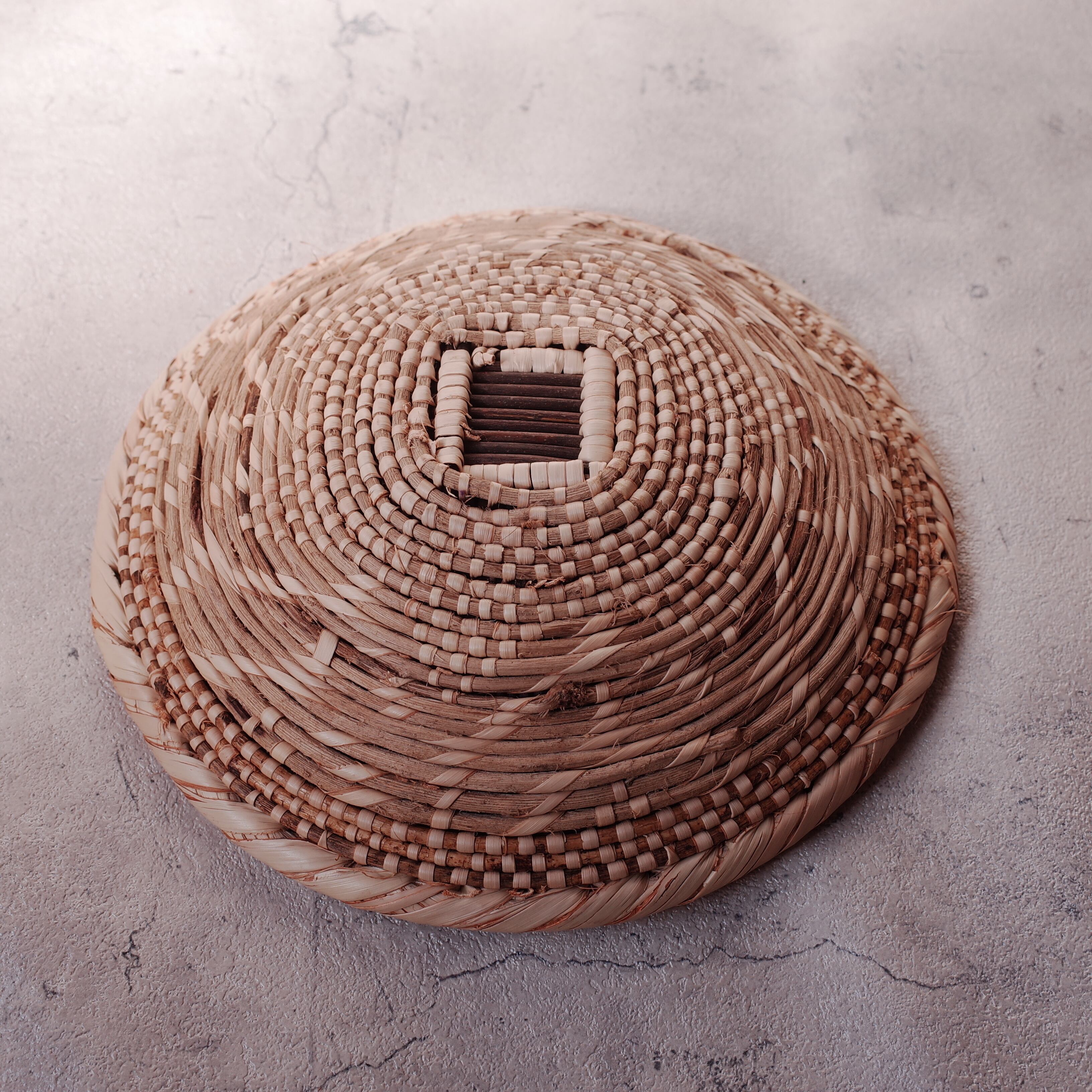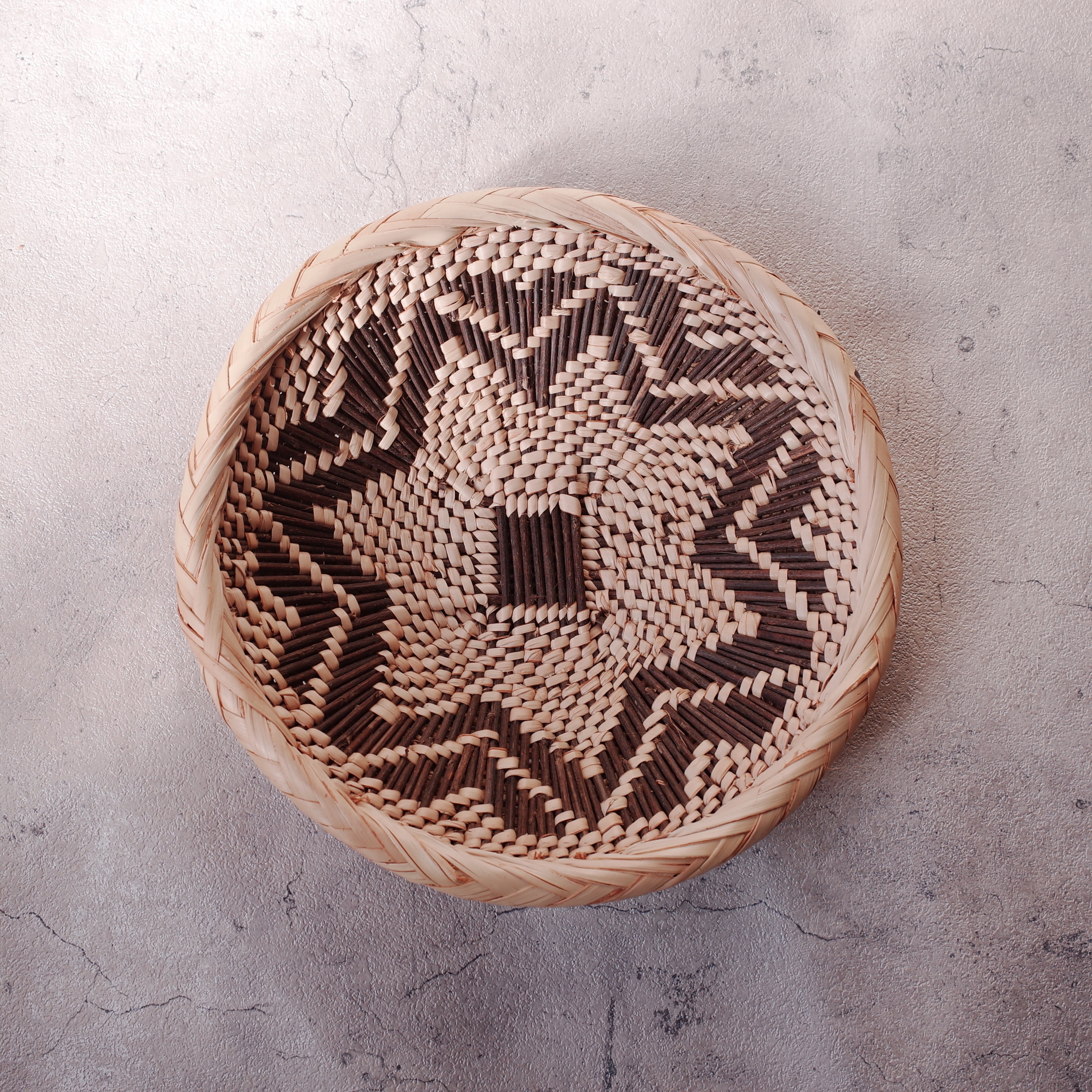 水草とイララ椰子で編まれた、小さめの浅型です。