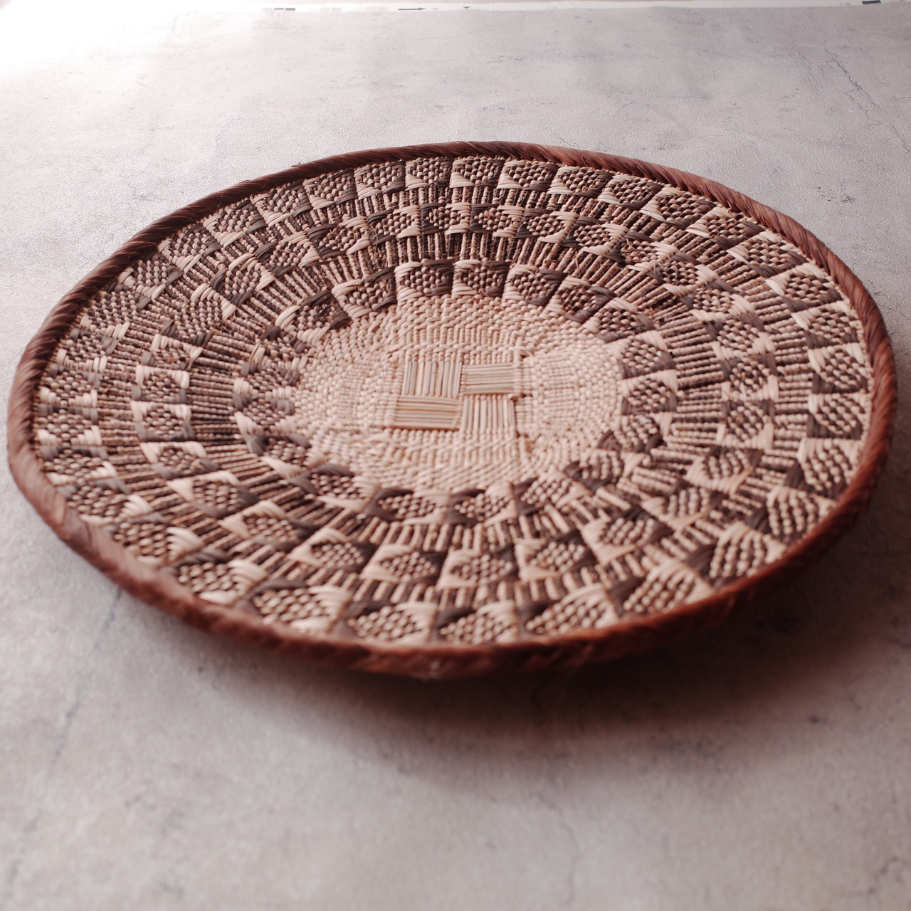 水草とイララ椰子で編まれた、大きな浅型のバスケットは