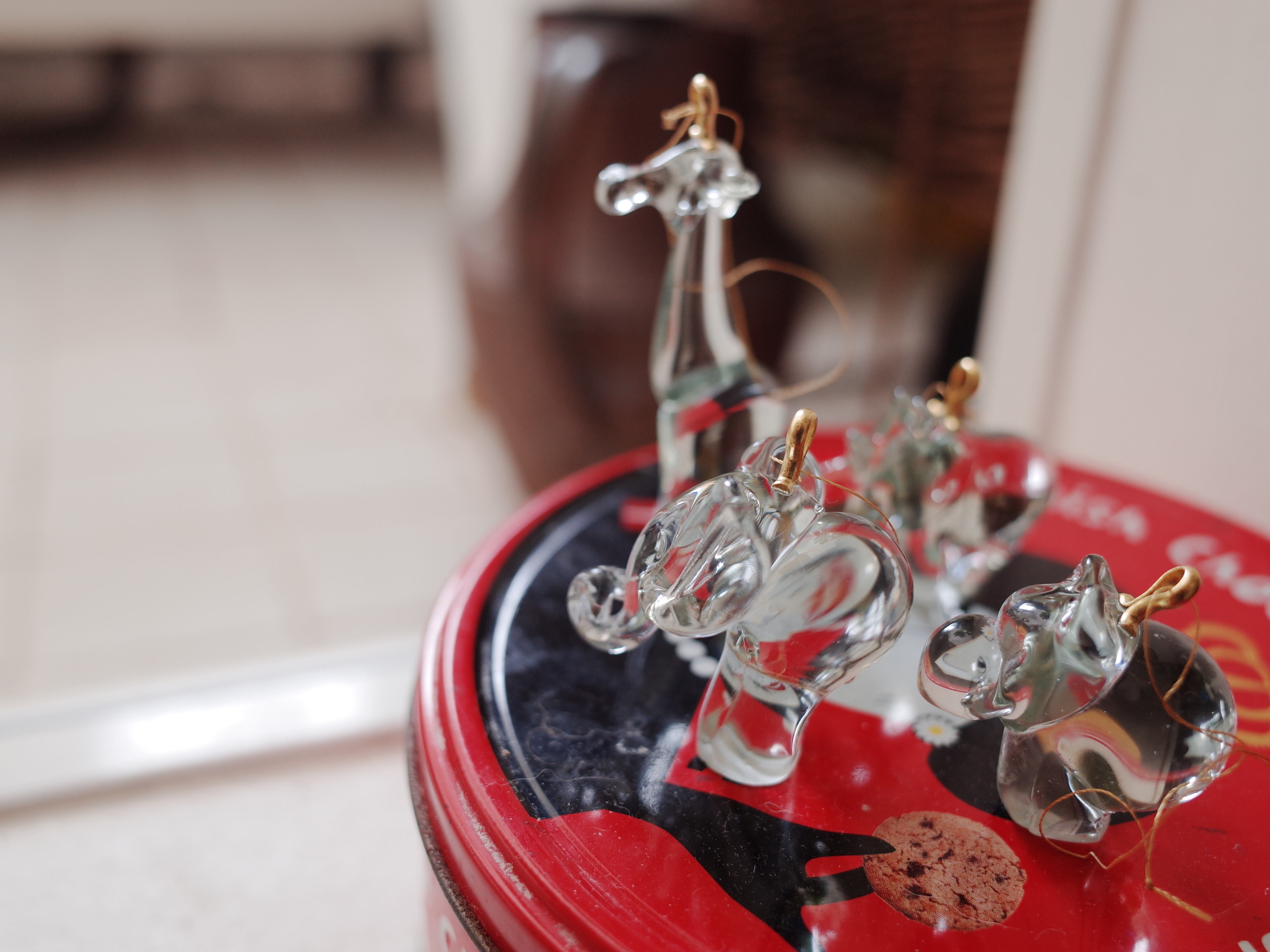 太陽光があたるとキラキラとする上質なグラスの小さなオブジェ