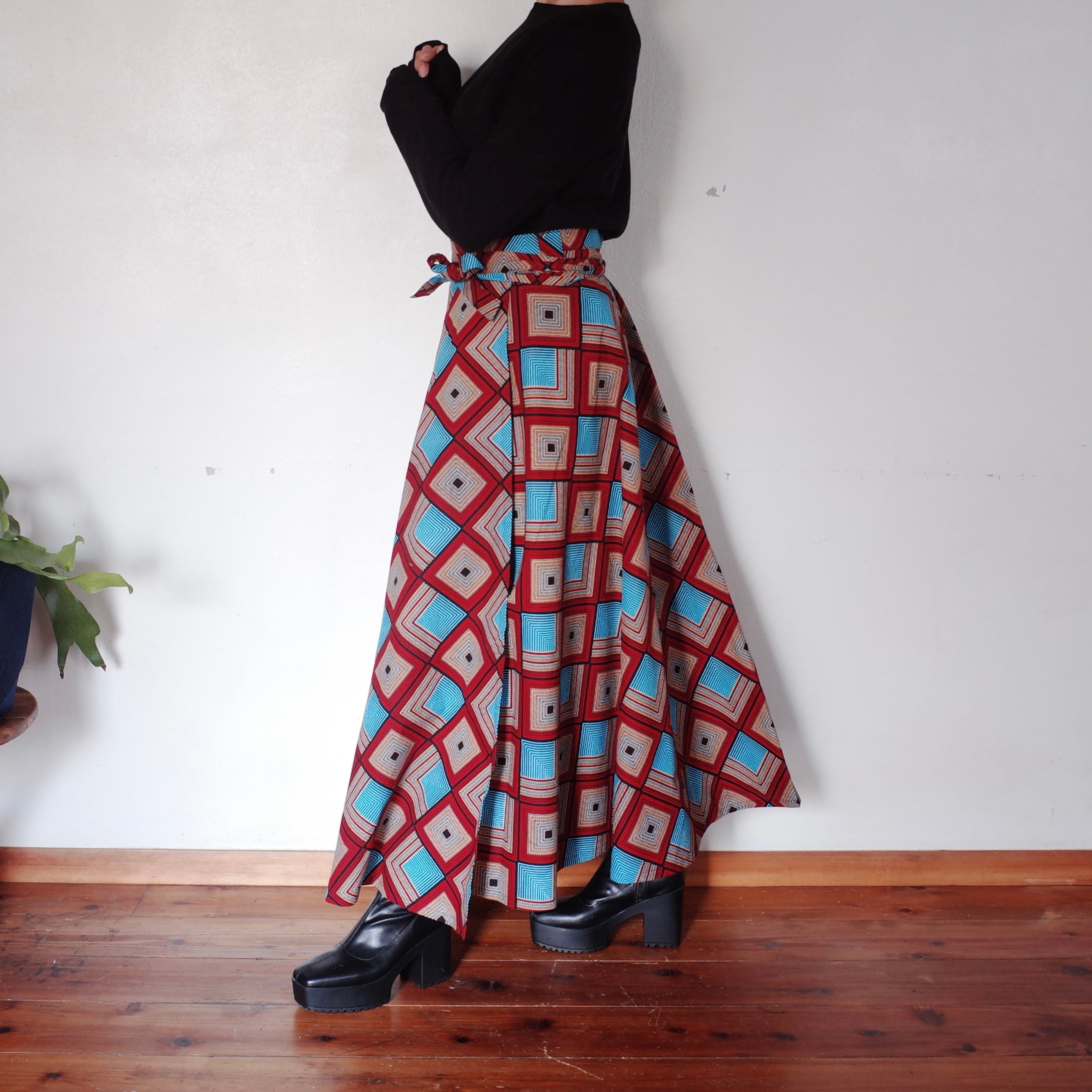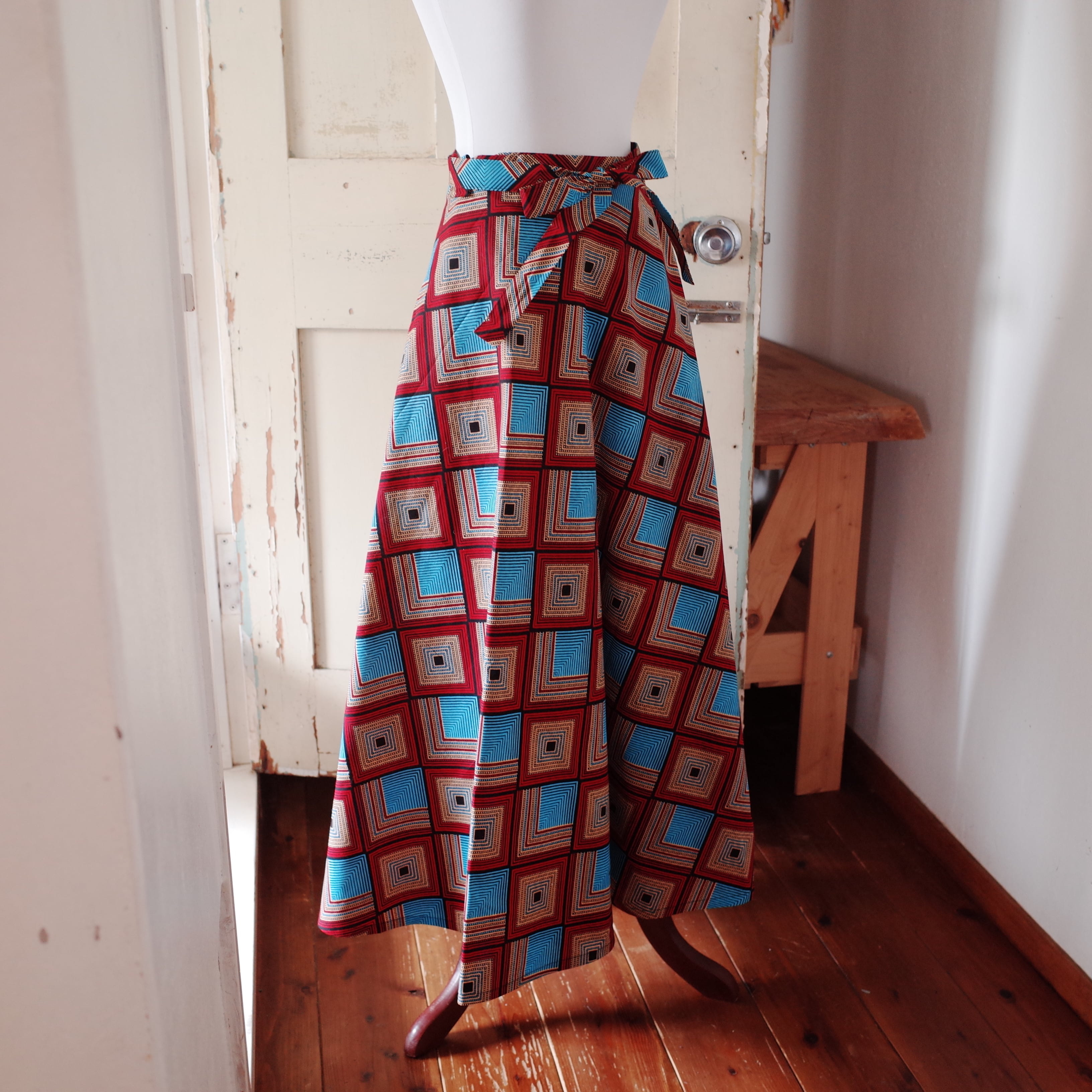 ケニアから仕入れたアフリカンプリント布(キテンゲ布)の半円形の巻きスカートです。