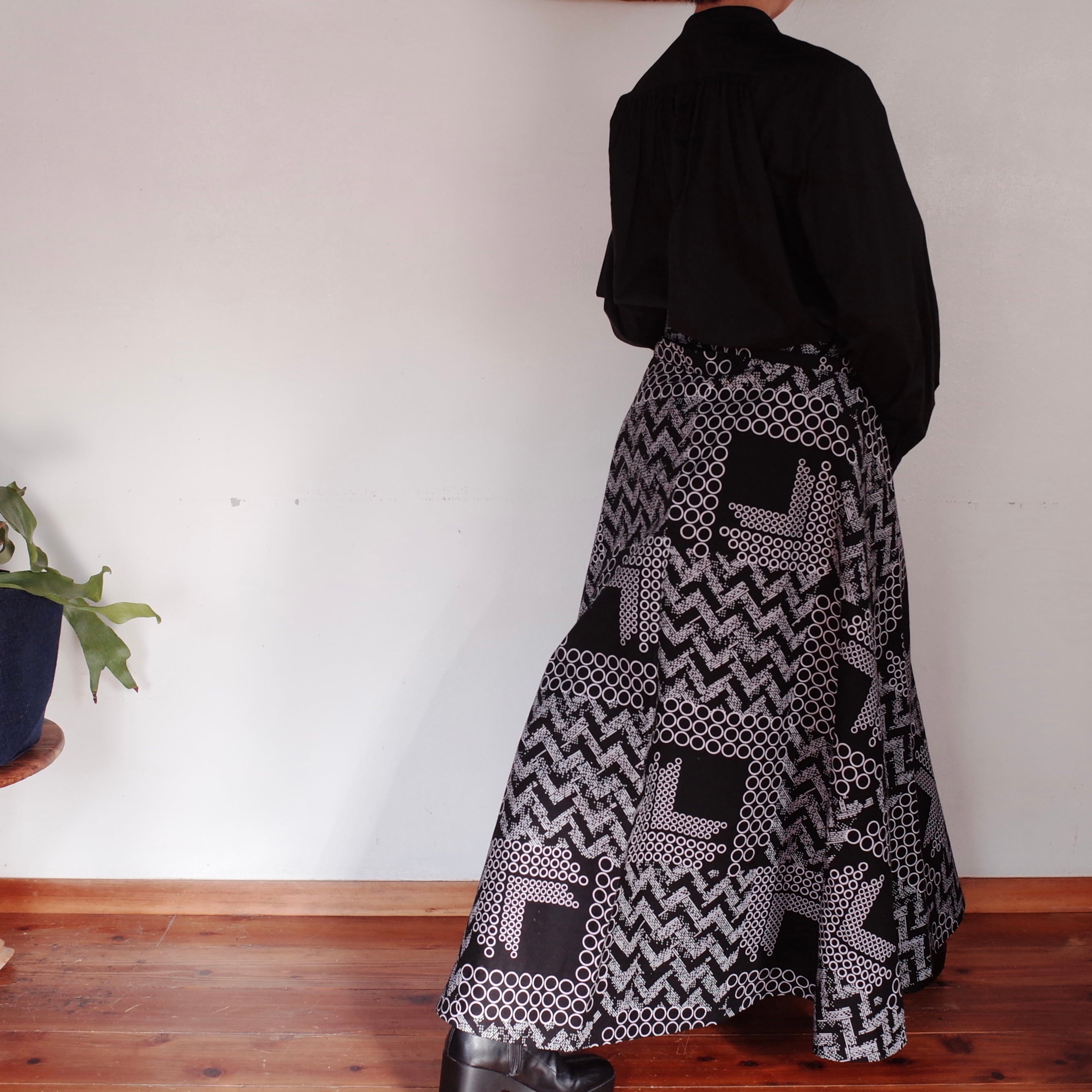 アフリカンプリント サーキュラーラップスカート our new black