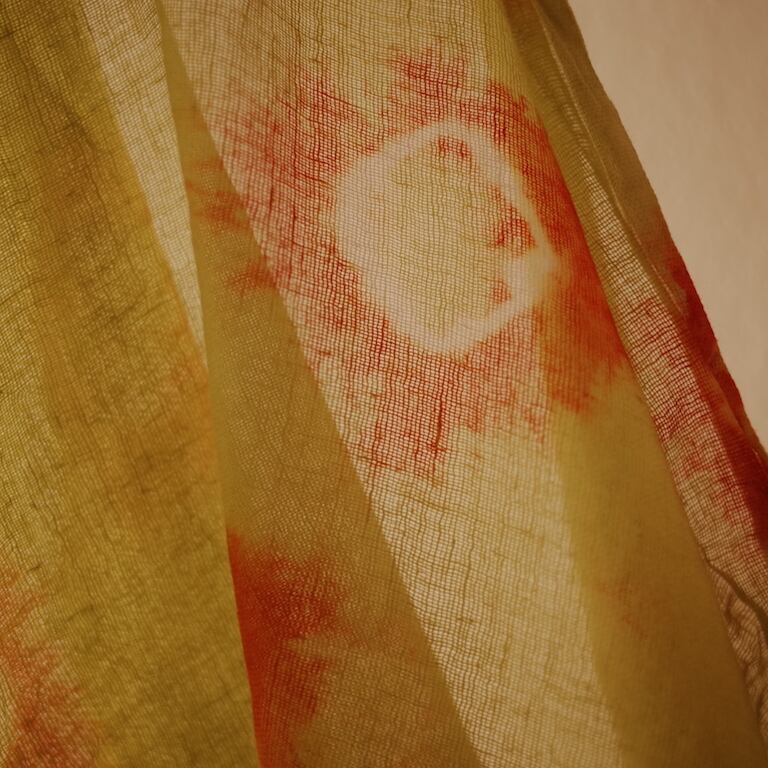 モーリタニアの絞染め布です。薄手ですが、とても大きな布です。インテリアや衣装であれば裏地が必要となります。
