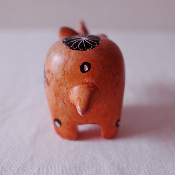 *こちらの商品は、サイの左側の顔部分とボディの右側に小さな黒いシミがございます。ご了承ください。