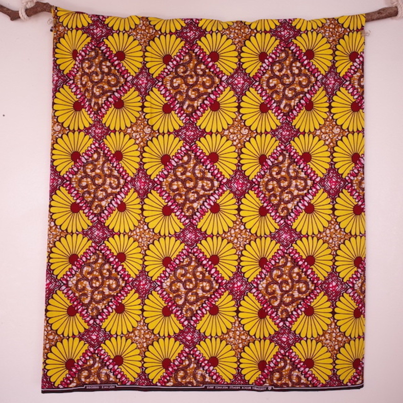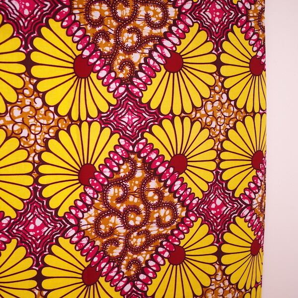 ⭐︎textile for order⭐︎ アフリカンワックスプリント布(キテンゲ) yellow flowers in pink