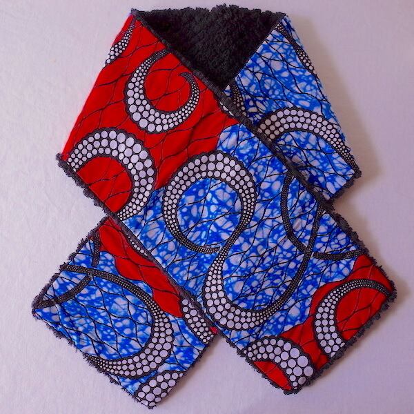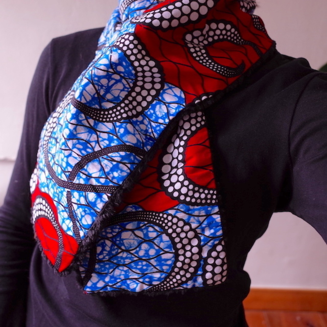 アフリカンプリント布とパイナップルボアのネックウォーマーです。