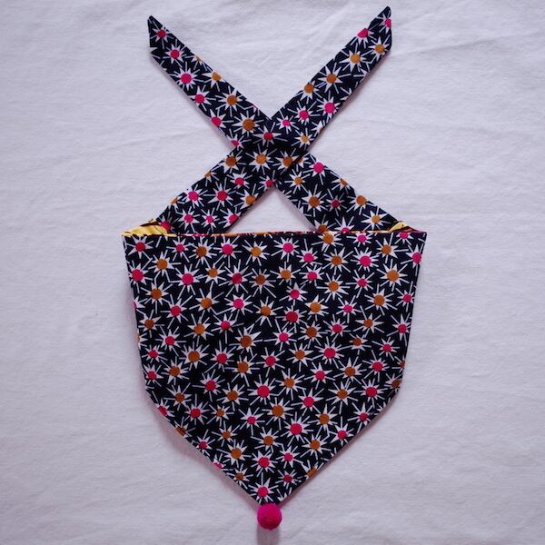 紐とバンダナ部分が取り外しできる、リバーシブルの犬用のネックウェアです。