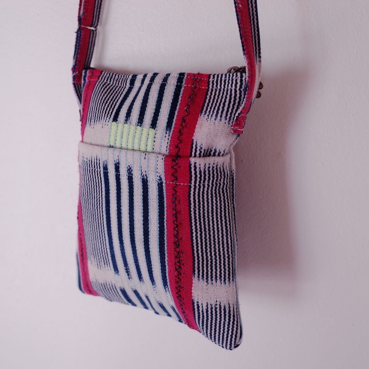 バウレ族の藍染布のサコッシュ/ショルダーバッグ