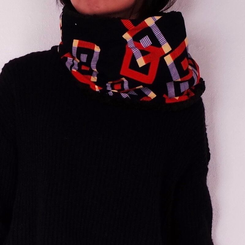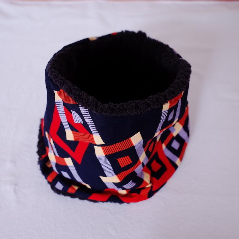 冬の首元を暖かく、そして華やかに彩るアフリカンプリント生地のネックウォーマーです。