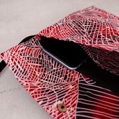 表地はコレリがセレクトしてナイロビから仕入れたアフリカンプリント布(キテンゲ)を使用、裏地は兵庫県西脇市の伝統先染め織り布、播州織を使用しています。