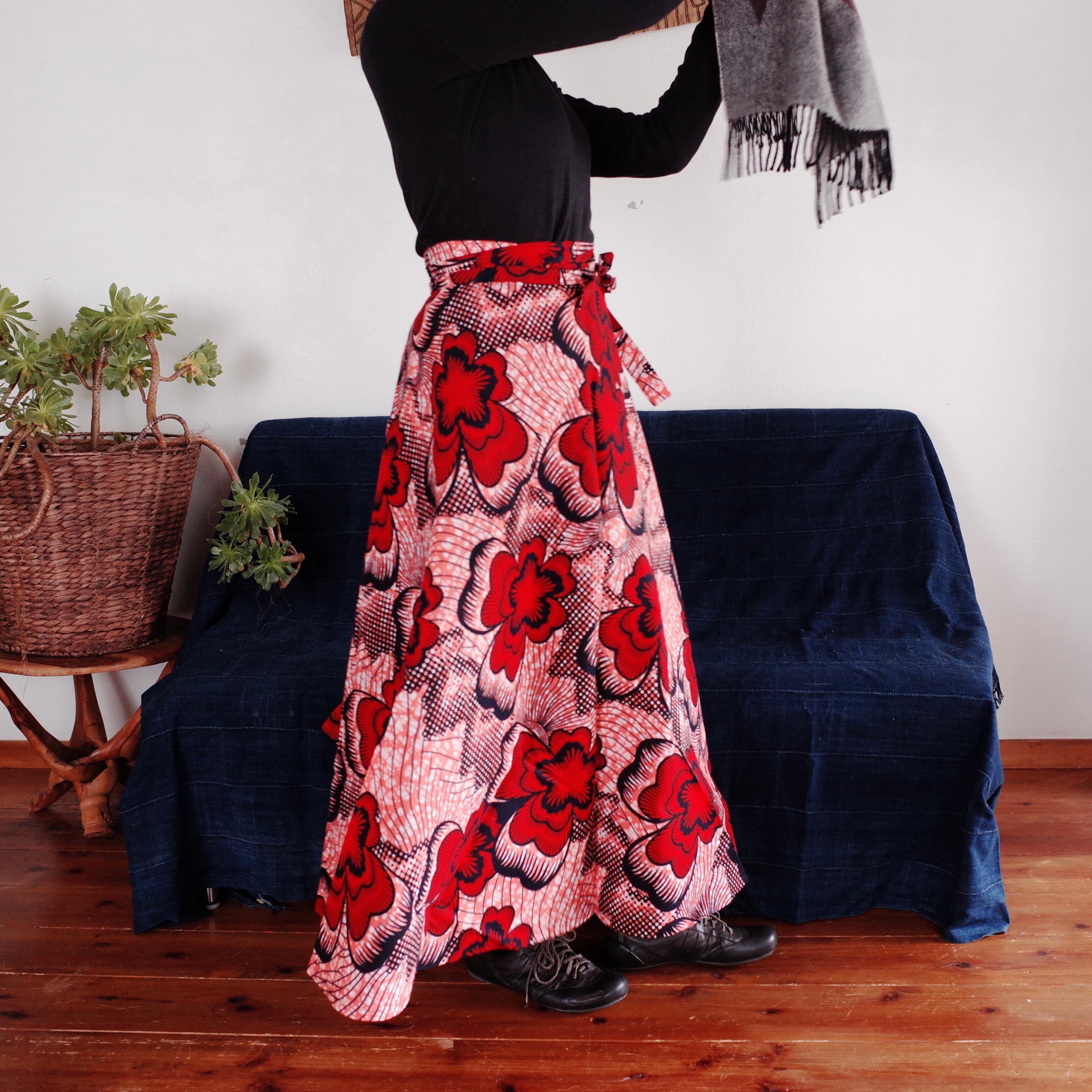 アフリカンプリント サーキュラーラップスカート l'espae en rose