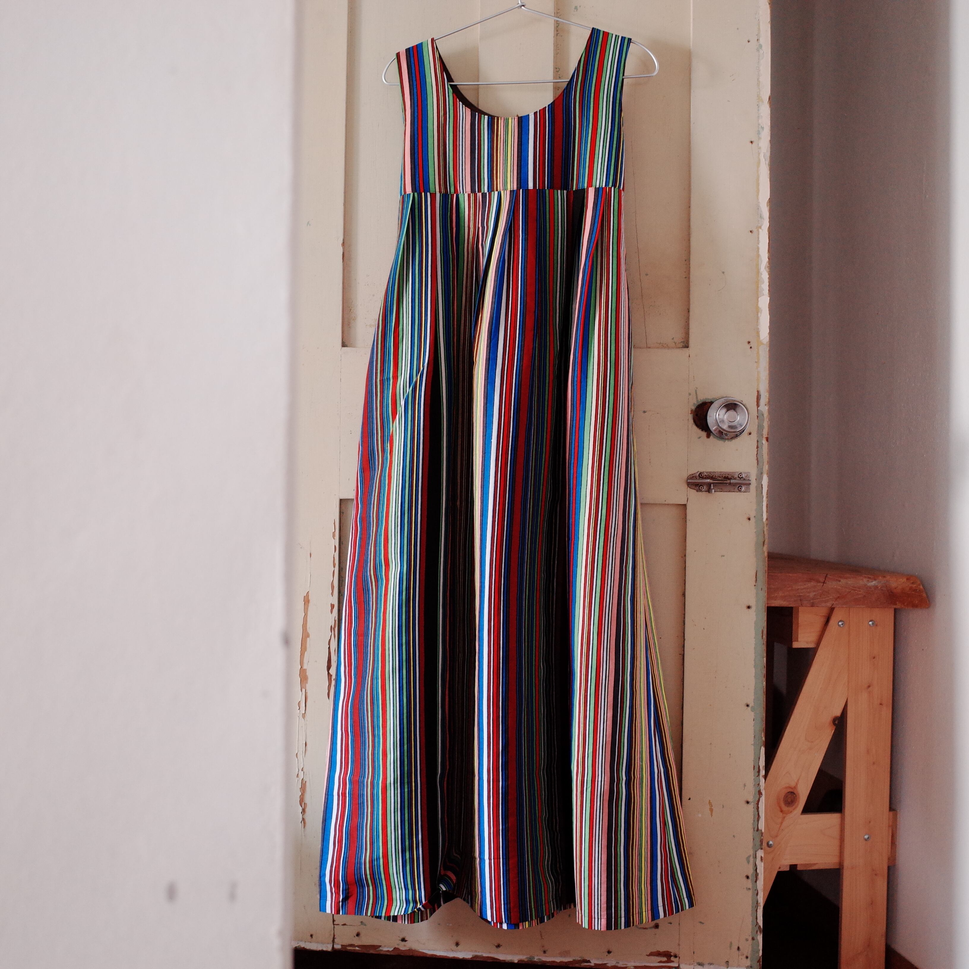 ケニアから仕入れたアフリカンプリント布(キテンゲ布)のノースリーブワンピースです。