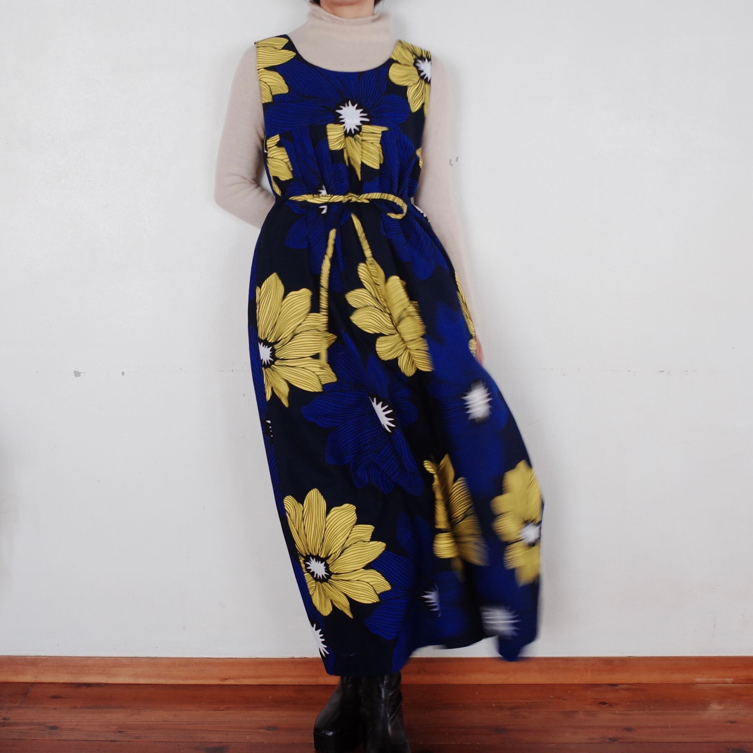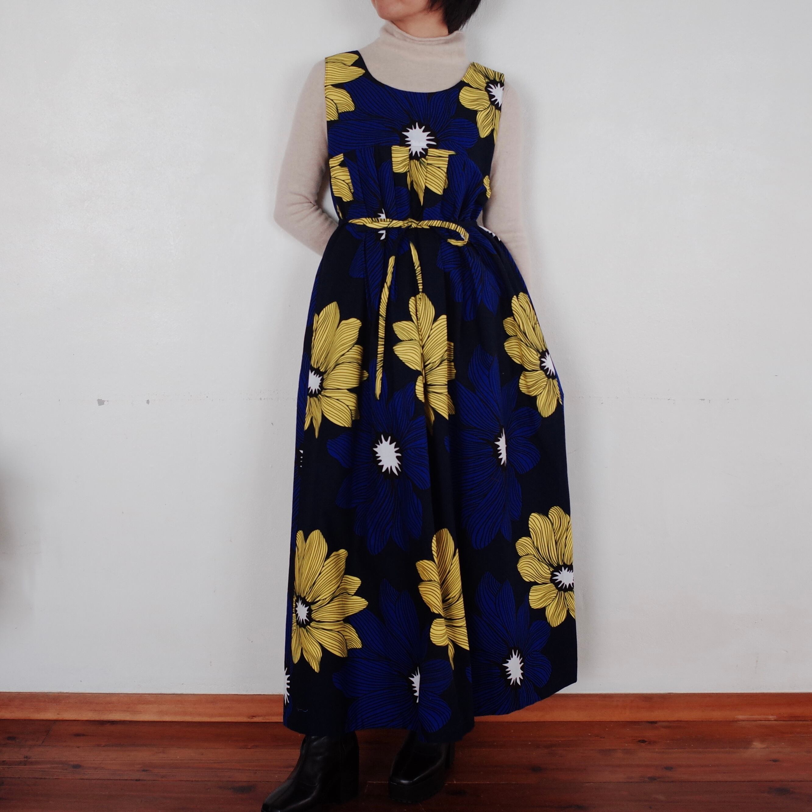 アフリカンプリント 2WAY オールシーズンワンピース fleurs jaunes