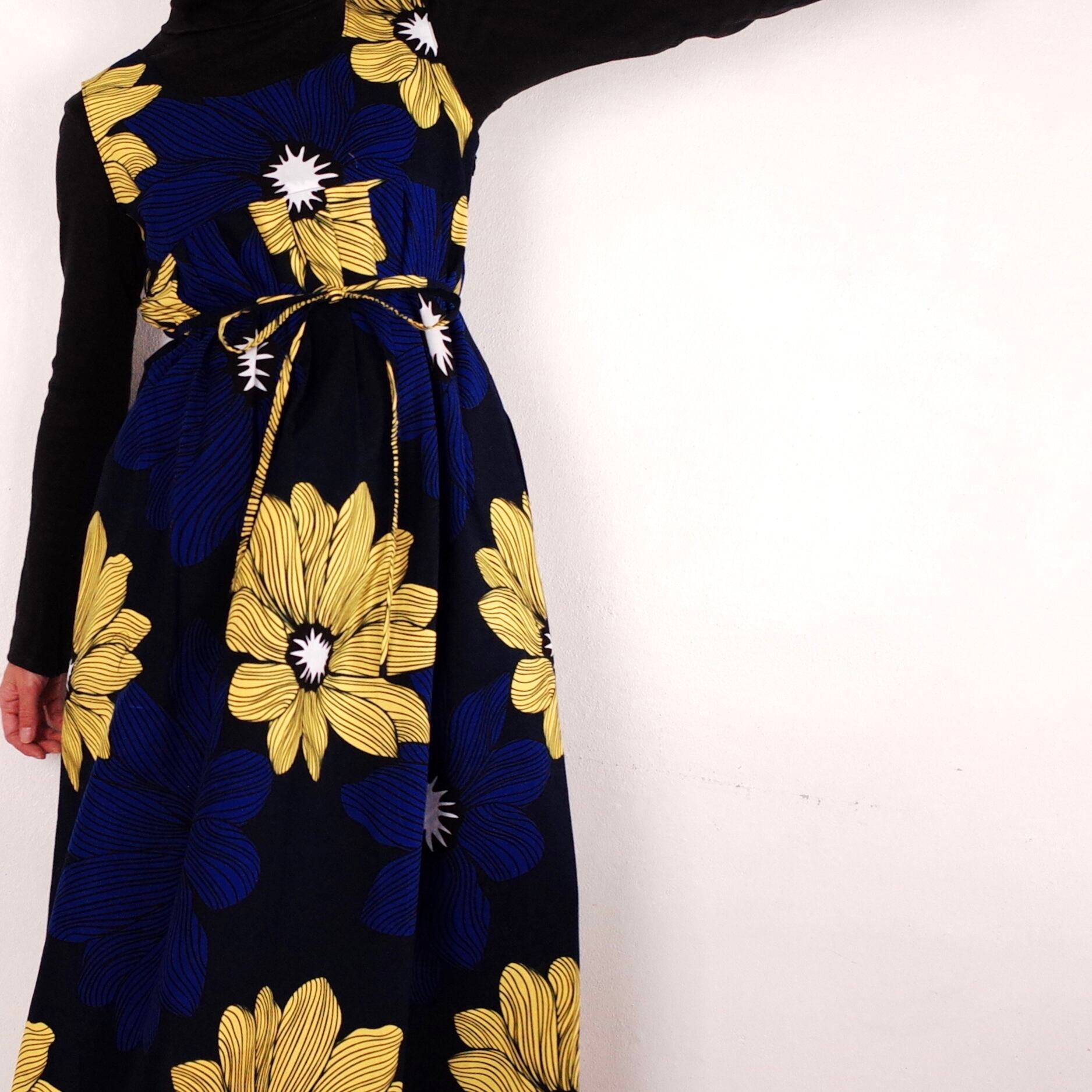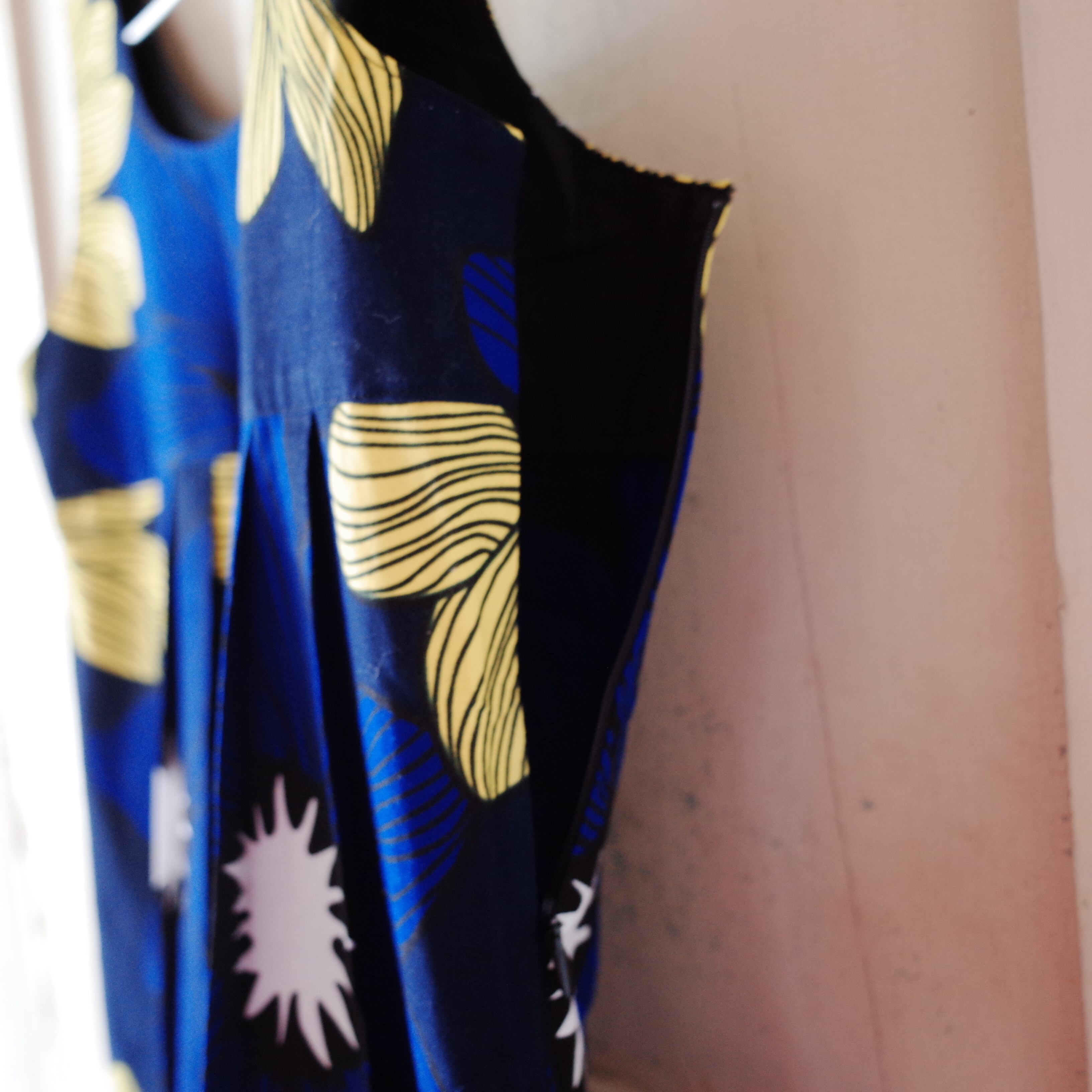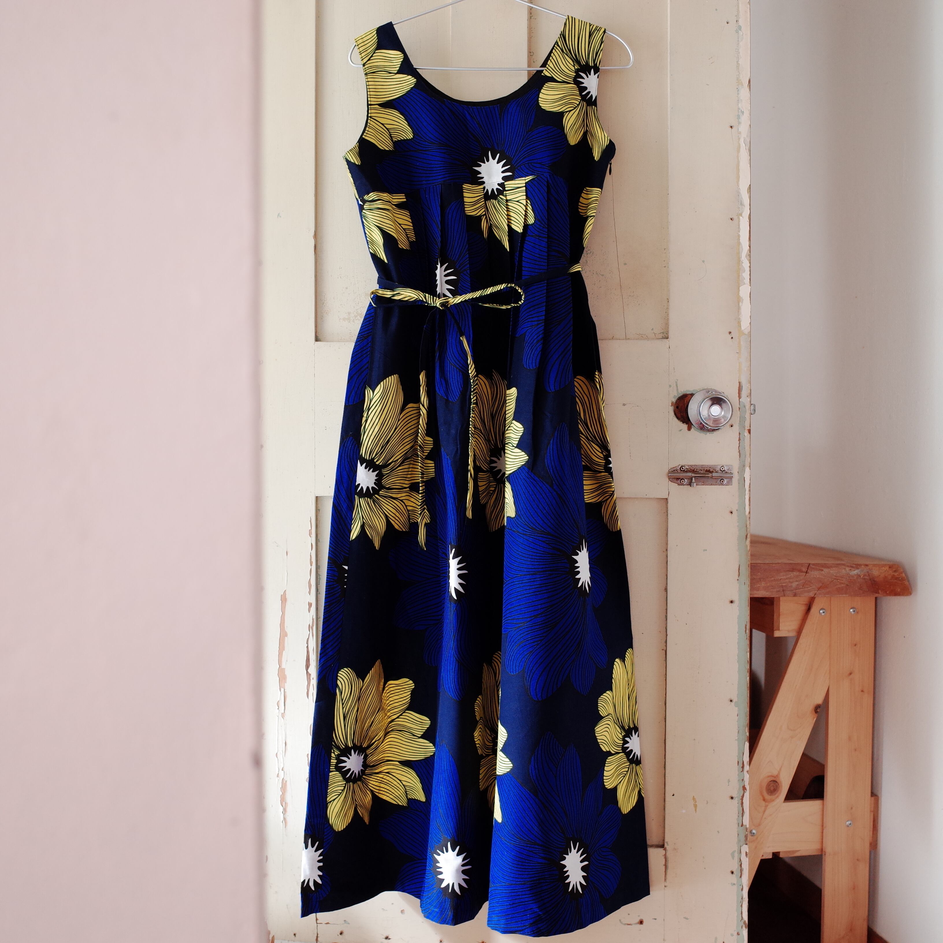 ケニアから仕入れたアフリカンプリント布(キテンゲ布)のノースリーブワンピースです。