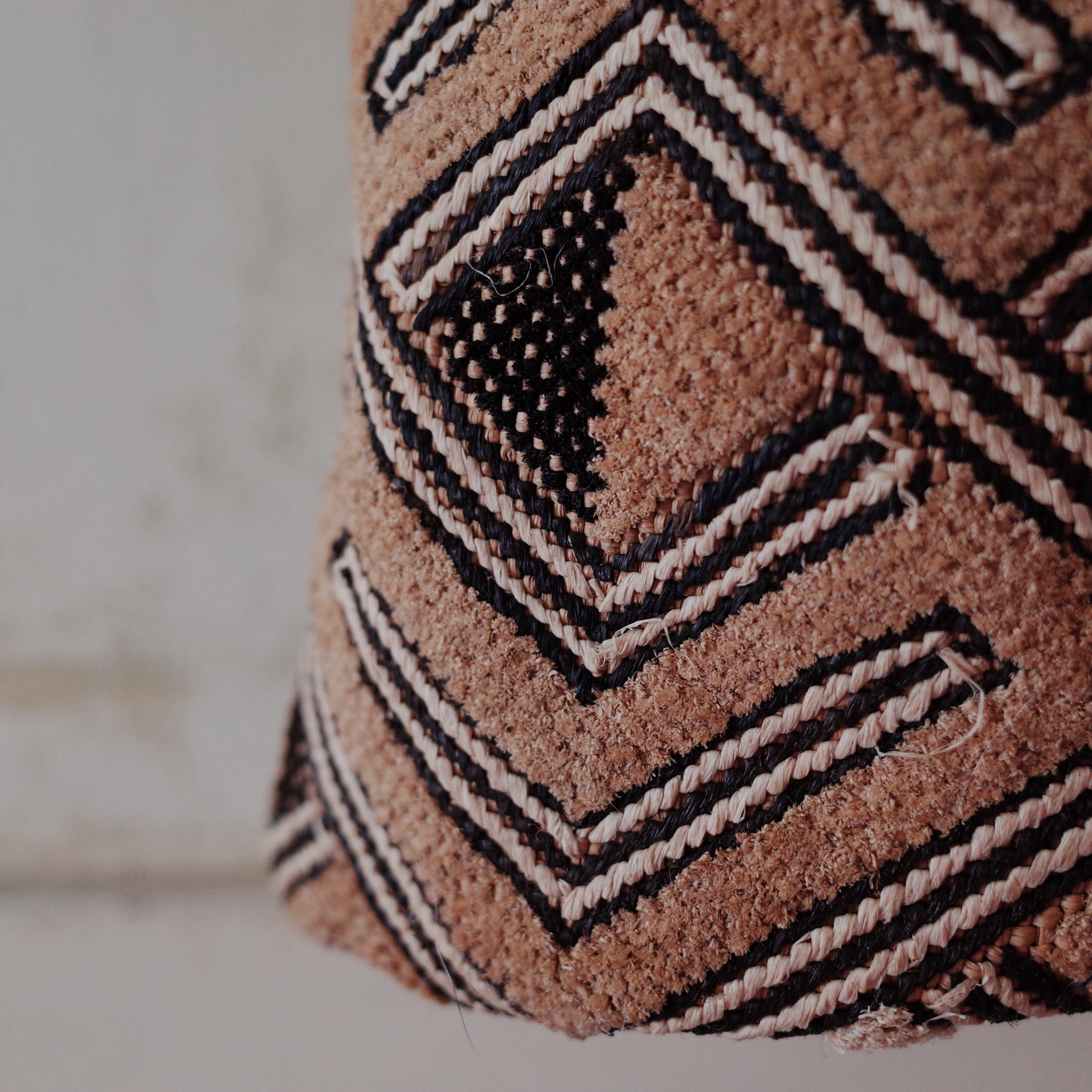 こちらは草ビロードとも呼ばれるショワの人々が作るクバ布をぐるりと一周使っています。